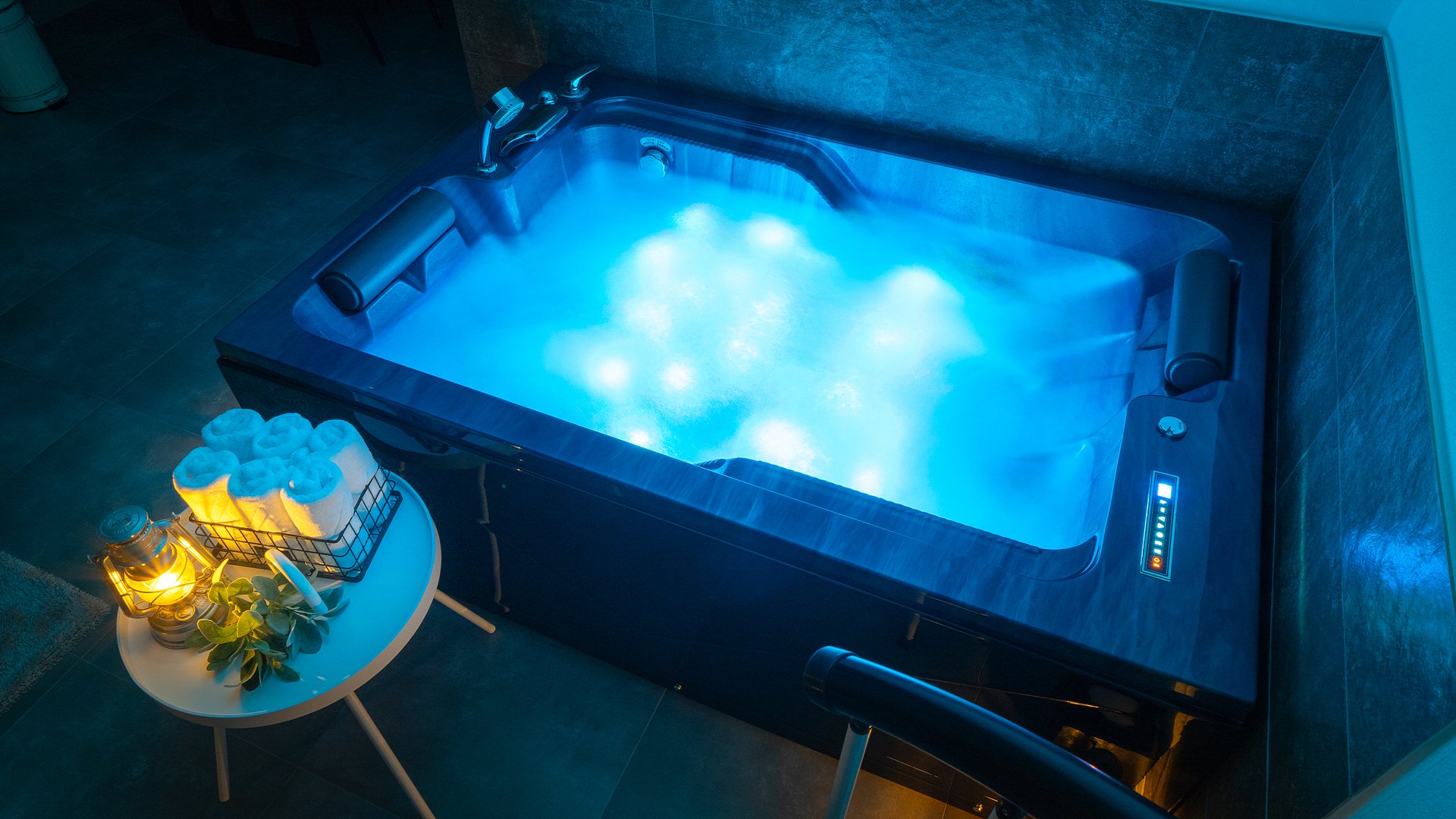 힘찬 물살과 화려한 LED조명의 제트스파가 전객실 설치되어 있습니다