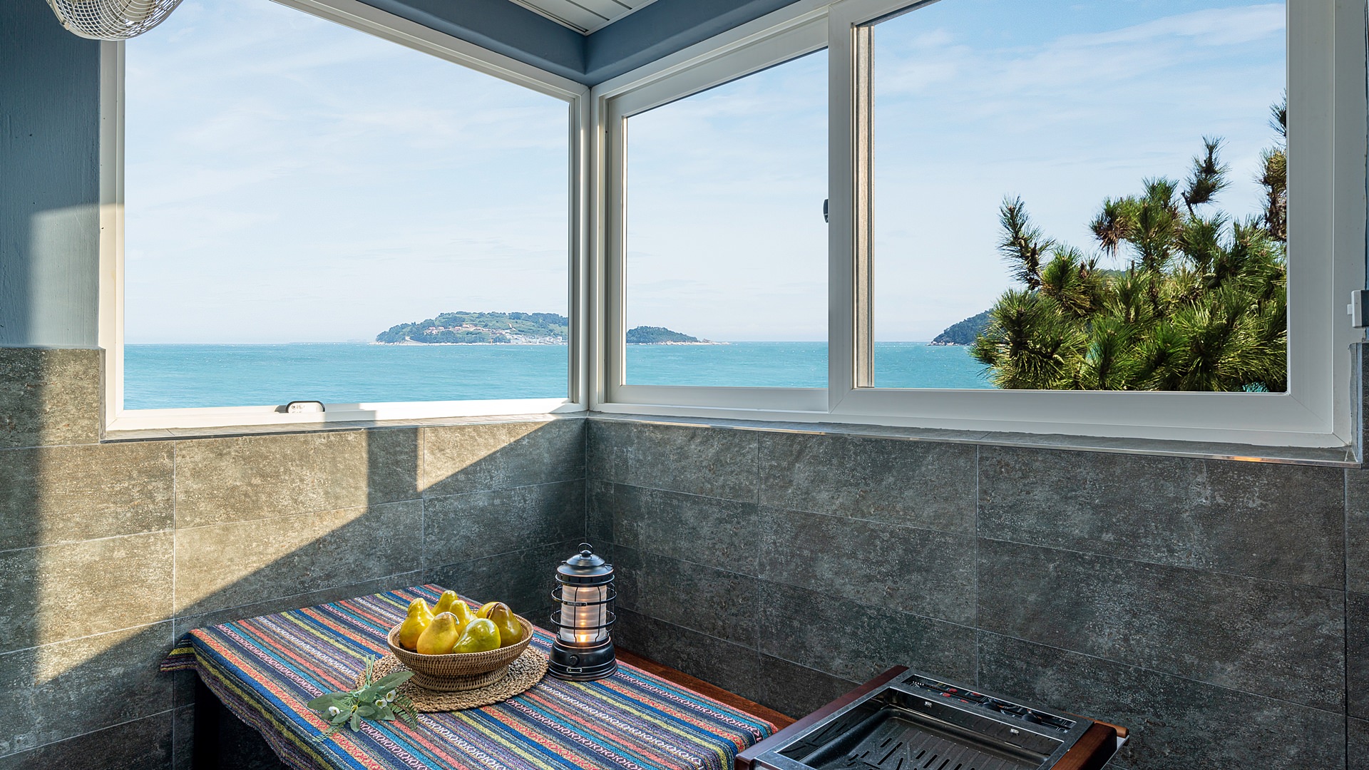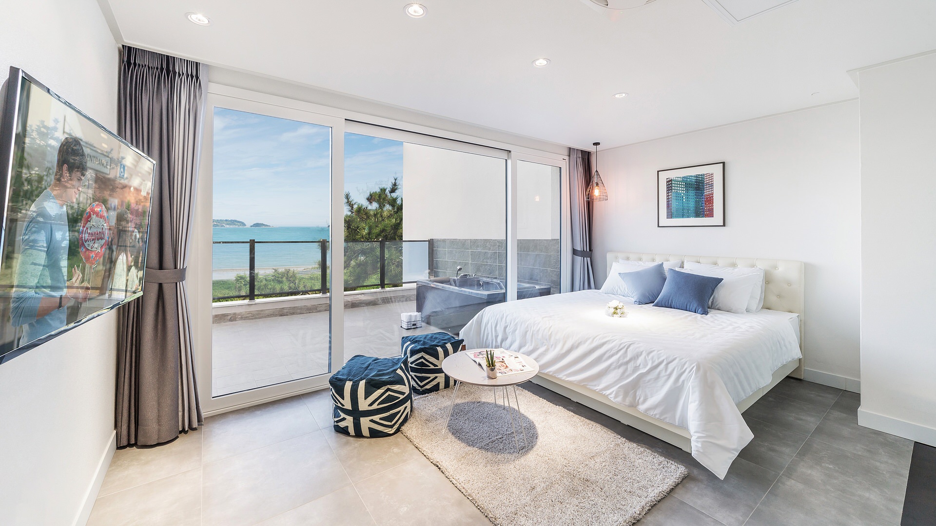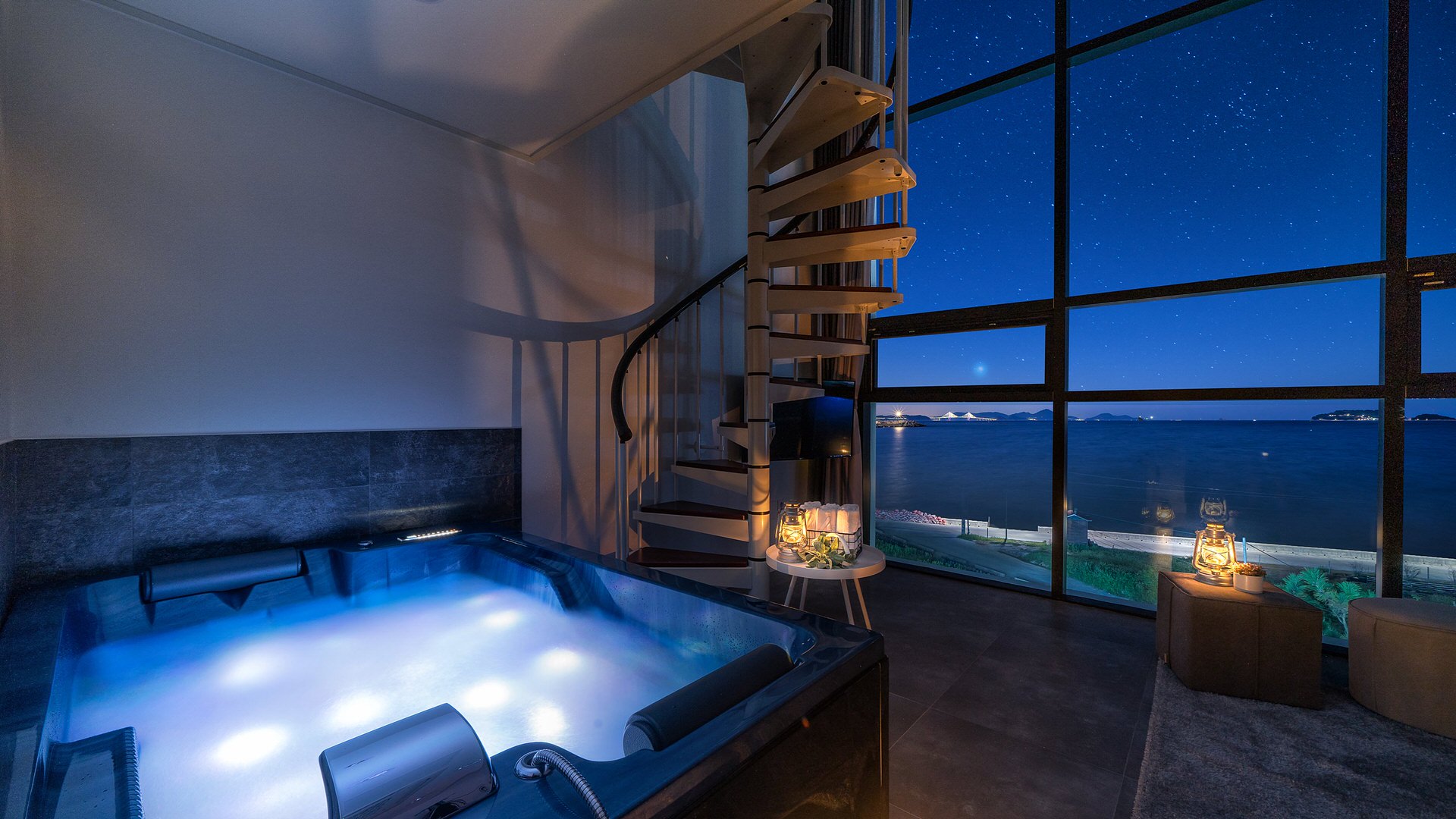 402호는 실내에서 넓은 창 가득 아름다운 바다를 바라보며 편안하게 스파를 즐기실수 있습니다.